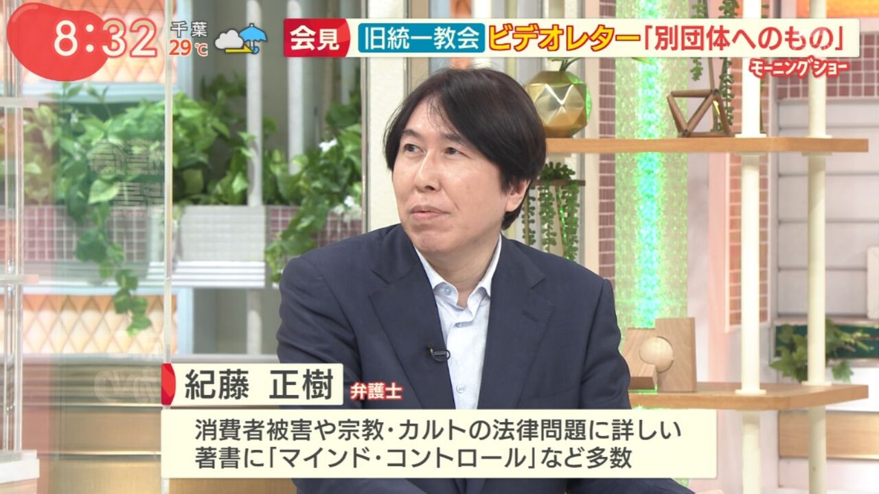 宗教トラブルに詳しい弁護士・紀藤正樹氏が、12日放送の『羽鳥慎一モーニングショー』(テレビ朝日系)に出演。安倍晋三元首相銃撃事件に関して11日に開かれた、宗教法人・世界平和統一家庭連合(旧・統一教会)田中富広会長の発言を疑問視した。