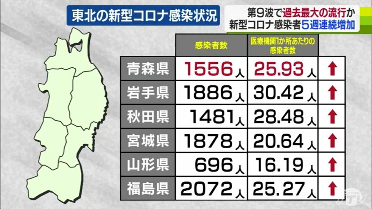 新型コロナの感染者数が、いわゆる“第9波”を迎えています。先月28日から今月3日までの1週間に報告された感染者数は全国で10万1289人。医療機関1カ所あたりの平均は20.50人で、5月8日に「5類」に引き下げられて以降、最も多くなっています。
