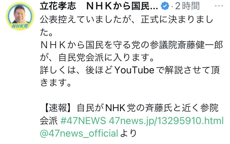 さすがにこれは衝撃です。ついに自民党は、兵庫県知事選で故人に対するデマや誹謗中傷を繰り返したNHK党と組むことに。なりふり構わないにしても限度を超えています。逆に言えば、それほど追い詰められているということ。https://t.co/jb0aSqI1Ni @47news_official