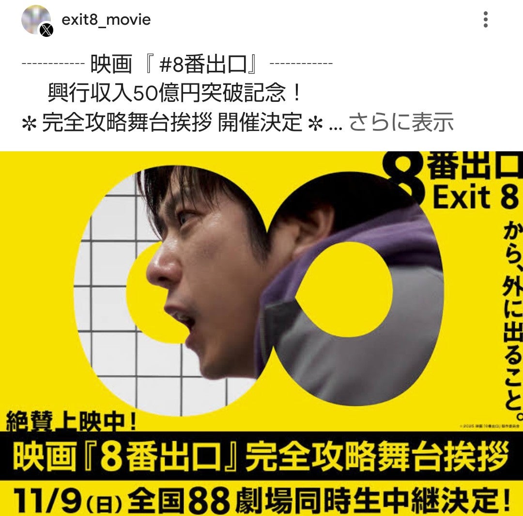 — 映画『8番出口』【公式】 (@exit8_movie) November 8, 2025