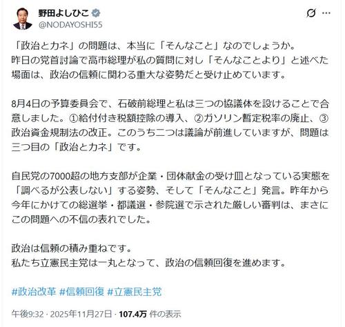 企業団体献金を「そんなこと」で片づけるような権力と癒着しきった腐った議員を減らしたいんですよ。 pic.twitter.com/UDAX86OUA4