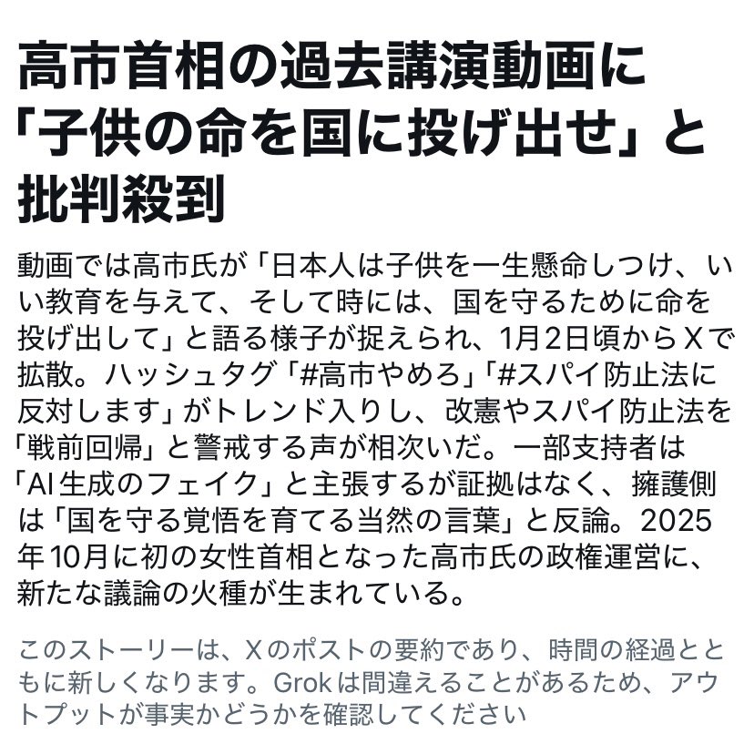 高市早苗首相「私達日本人は子供を一生懸命しつけ、良い教育を与えて、そして時には国を護るために命を投げ出して…」