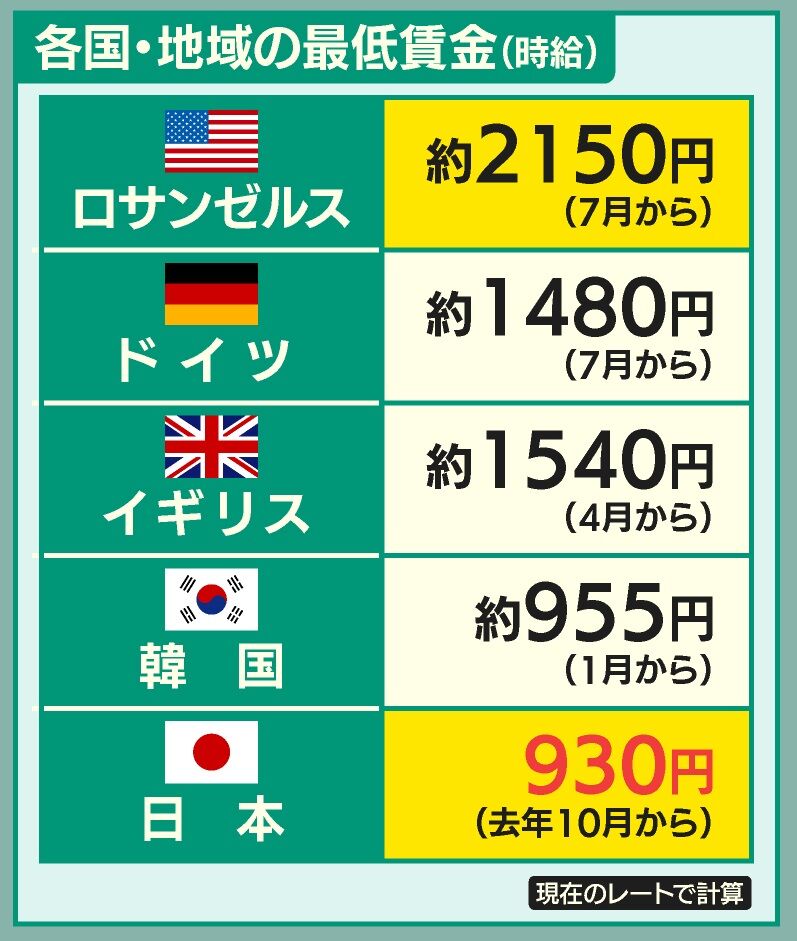 【悲報】物価が日本の3倍のアメリカの最低賃金、日本と大差ない