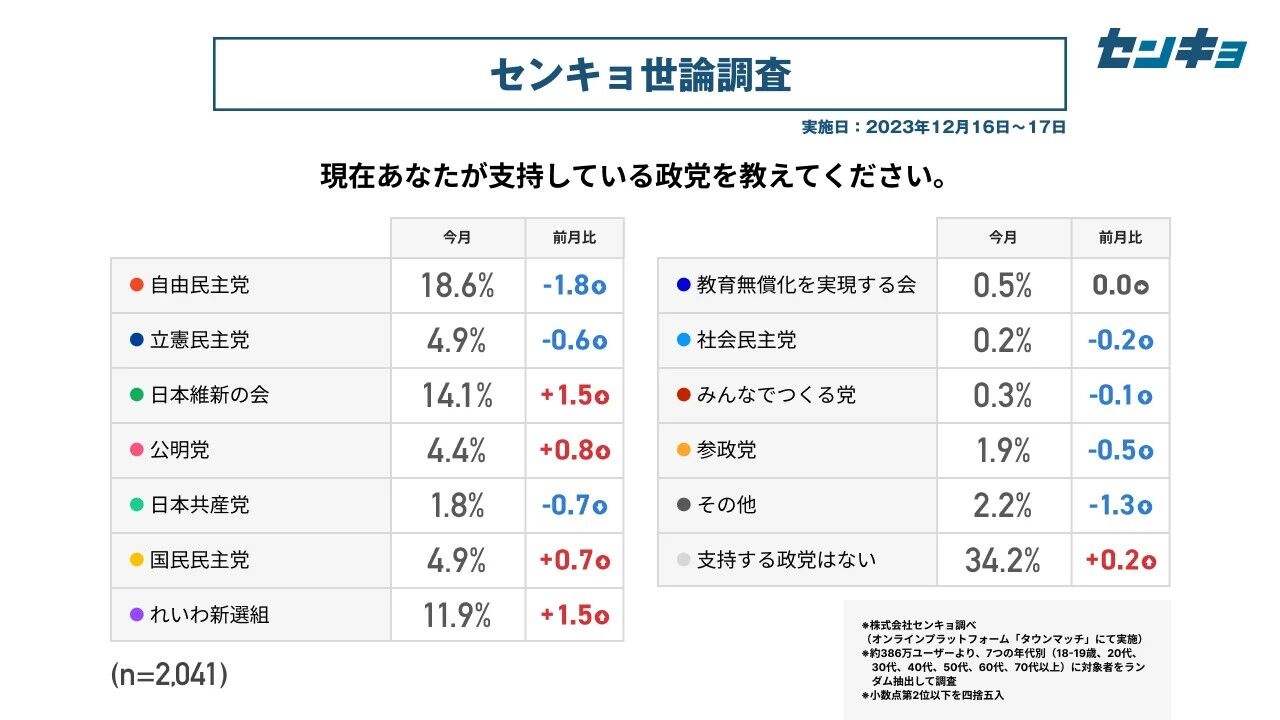 毎日新聞の世論調査。自民支持層でも首相続投と交代希望は拮抗しているという調査結果が。裏金問題を解決しただけでは信頼回復は難しいだろう。消費税廃止くらい言わなきゃな。