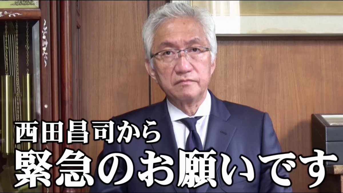 西田昌司氏が自身のYouTubeチャンネルで「このままでは大切な議席を守ることが出来ません」と発言された模様