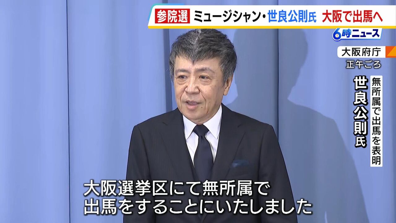 | 参院選出馬表明の世良公則氏 「音楽人生スタートした大阪で挑戦」 音楽家の世良公則(せらまさのり)氏(69)が1日、3日公示、20日投開票の参院選大阪選挙区に無所属で立候補すると表明した。大阪市内で記者会見した世… (出典:) |
