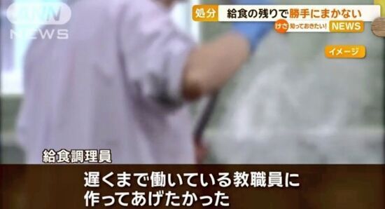 遅くまで働いている教師に、給食の残った食材でおにぎりなどを作ってあげていた女性2人を懲戒処分するって、どうなの?減給すんなよ!その調理員2人もきっと生活が苦しいだろうに。
